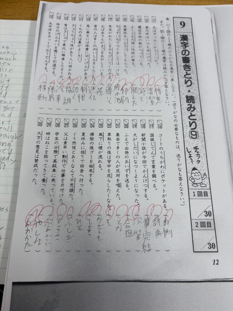 提出されたノートを見ると、試験範囲をコピーしたプリントが15枚挟まっていました。5章分を3回転。つまり、漢字テストだけでも最低3周はやり切っているということです。