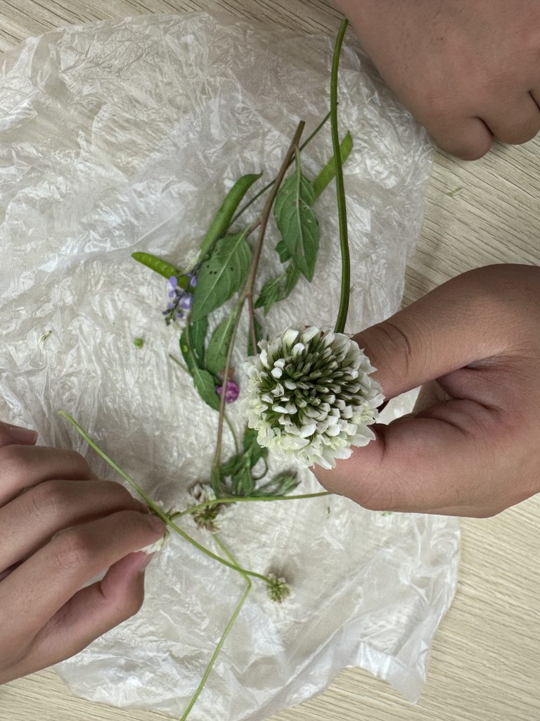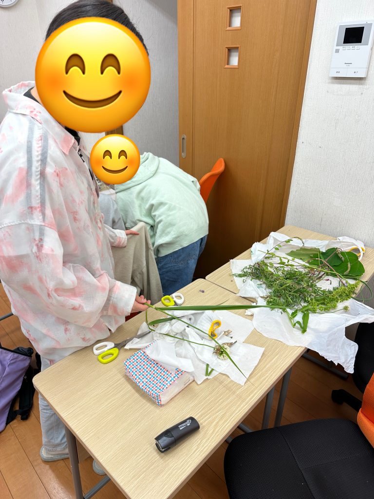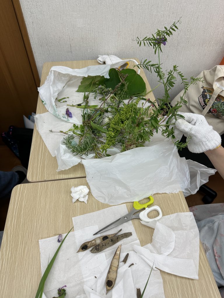 刈って帰って来るときは気づかなかったのですが、いざ塾の机で解体を始めるとあちこちから小さなアリや、アブラムシが飛び出してくるので、女子も男子もキャーキャー。